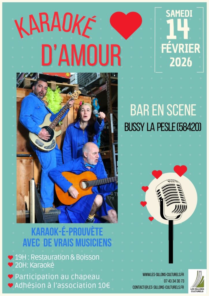 Les sillons culturels élargis ces propositions avec le KARAOKéPROUVèTe qui seront au Bar en Scène le 14 février 2026 à bussy la pesle. Ca commencera vers 20h.